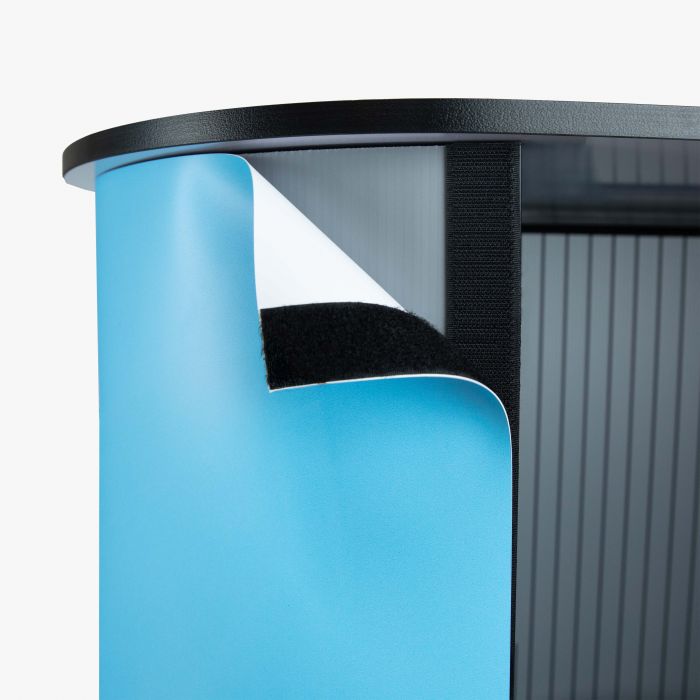 Op zoek naar een compacte en representatieve tafel-oplossing die direct een professionele indruk maakt? De Kidney Balie is perfect voor beurzen, promoties, events of ontvangstbalies. Dankzij de elegante, kidney‑vorm oogt je presentatie vriendelijk, toegankelijk en visueel aantrekkelijk. Je hebt de keuze uit twee hoogwaardige materialen voor de bodyprint. Beide opties zijn licht van gewicht, opvouwbaar en eenvoudig te wisselen. Het boven- en onderblad van de balie zijn gemaakt van 16 mm gelamineerd MDF, wat zorgt voor stabiliteit en een hoogwaardige uitstraling.