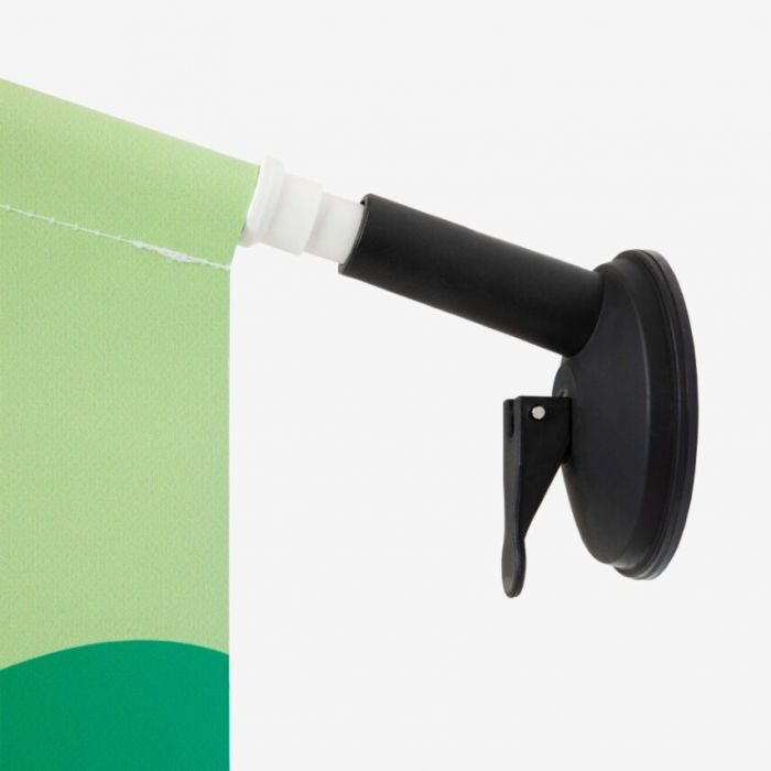 De Raamvlag is een gebruiksvriendelijke vlag die je moeiteloos bevestigt aan iedere glazen ondergrond met een zuignap. Hij is dubbelzijdig geprint op stevig materiaal (Banner 610), dat ondoorzichtig is, waterafstotend en geschikt voor binnen én buiten. Dankzij de meegeleverde stok en optioneel te bestellen zuignap bevestig je de vlag snel en veilig.